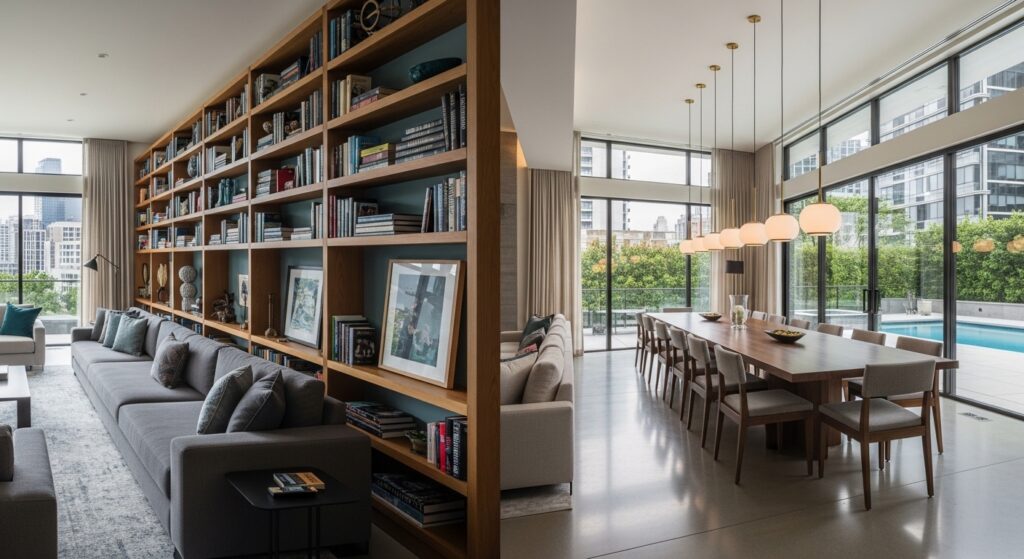 • In Interior layout planning, this length allows for multiple furniture zones like seating + storage + a slightly unnecessary but cute side table