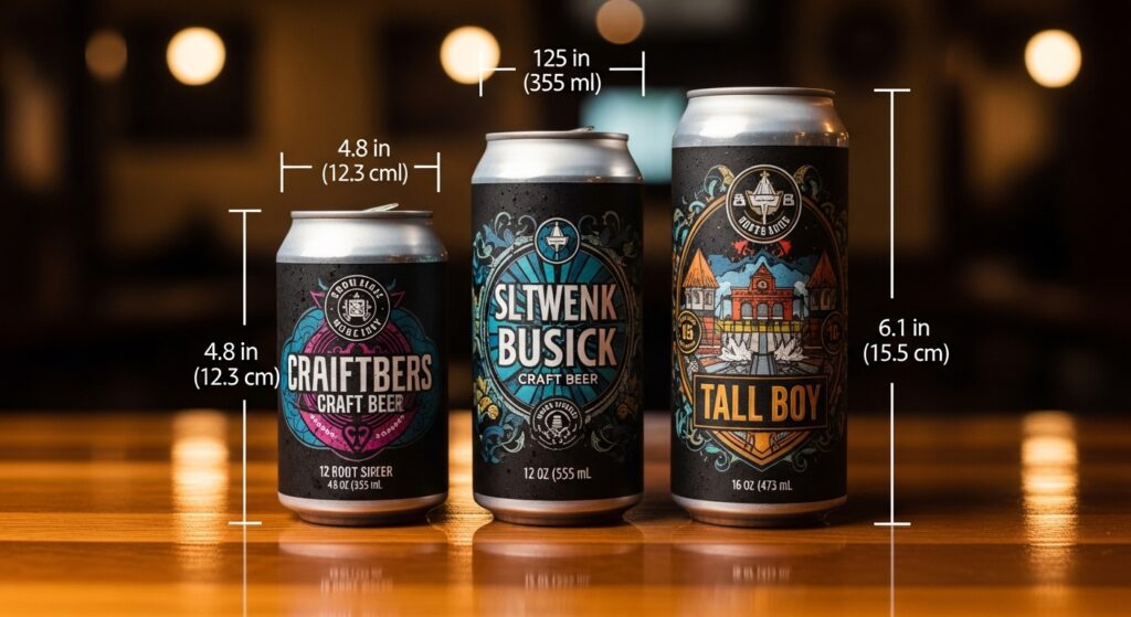 - 16 oz (473 ml) “tall” can: Popular with craft beers. Also called tall boys, though technically the true Tall Boy beer can size is often 24 oz (710 ml).