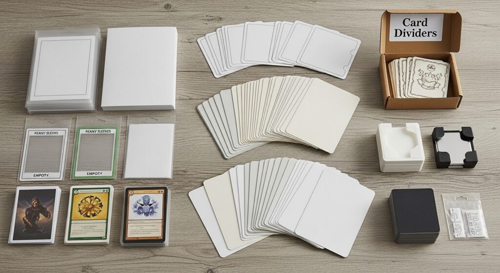 Collectors swear by Penny Sleeves, Premium Sleeves, Toploaders, Binder Pockets, and Deck Boxes. The choice of protective storage Polyethylene or Polypropylene sleeves affects handling, shuffling, and even long-term card health.